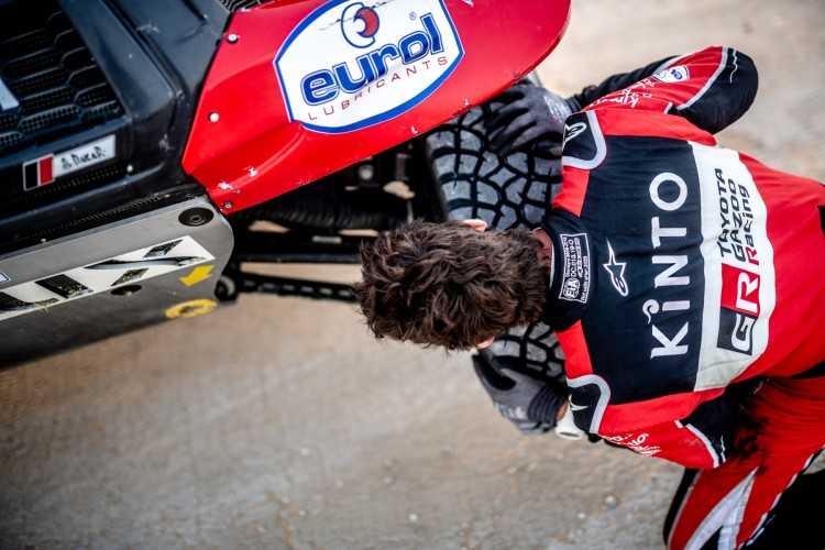 La pareja más rápida de TOYOTA GAZOO Racing en la décima etapa fue la compuesta por Giniel de Villiers y Alex Haro, que finalizaron con el tercer mejor tiempo del día. A pesar de perder 4 minutos y 26 segundos, mantienen el sexto lugar en la general, a 4 minutos y 44 segundos de la quinta plaza.