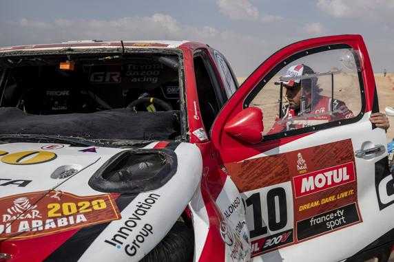 Explicó que los problemas en las ruedas «no fue por pinchazos, sino que se desllantaron los dos neumáticos. También cambiamos un brazo de la suspensión porque notamos que el coche iba raro y poco a poco hicimos kilómetros para llegar a meta. En la segunda mitad de la etapa el coche ya estaba al cien por cien, pero se neutralizó por problemas en la carrera».
