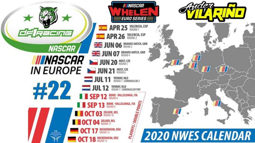 La temporada de la NASCAR Europea tendrá 13 carreras y comenzará como viene siendo habitual con las dos carreras en el circuito de la Comunidad Valenciana. A continuación, visitará Brands Hatch (Inglaterra), Most (Rep. Checa) y el oval de Venray (Países Bajos) que cerrará la temporada regular. A continuación, las 6 últimas carreras, los playoffs, puntuarán doble y se celebrarán en Vallelunga (Italia), Zolder (Bélgica) y Hockenheim (Alemania).