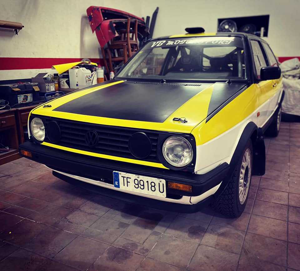 El piloto tinerfeño Vicente Bello Alvarez le ha realizado un «cambio de look» a su Volkswagen Golf GTI, que pasa del rojo a una mezcla de colores donde destaca el blanco, amarillo y negro.