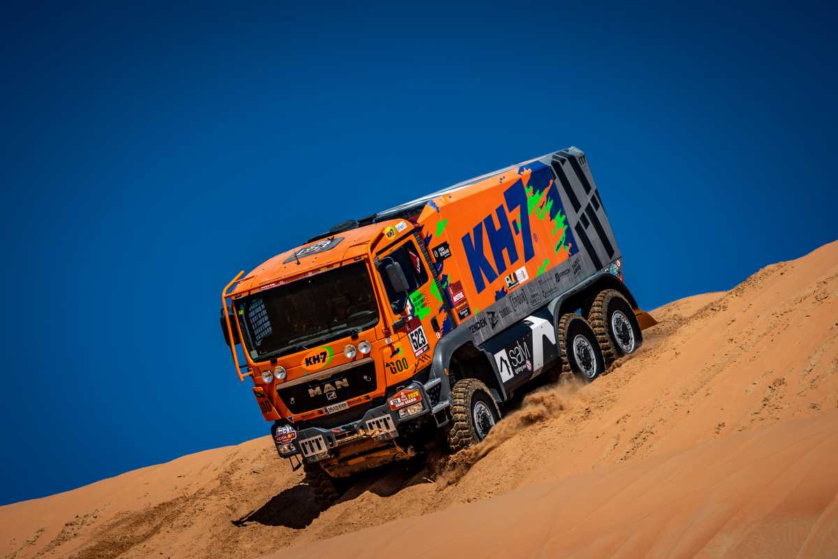 “Ha sido un Dakar redondo como una luna llena”. José Luis Criado no abandona la vena poética ni siquiera cuando la adrenalina de la competición todavía fluye por sus venas. El veterano copiloto jienense ha resumido así la impecable trayectoria del KH-7 Epsilon Team en el primer Dakar en Arabia Saudí. El MAN de tres ejes pilotado por Jordi Juvanteny, con Criado y Xavi Domènech como navegantes, ha terminado la carrera más dura del mundo en la 19ª posición y se ha llevado la victoria en las categorías de Producción y 6×6.