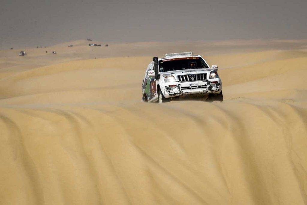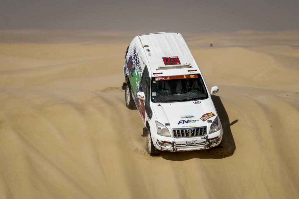 Anécdotas al margen, la etapa fue especialmente difícil para el Toyota Land Cruiser: “Ha sido uno de los días más complicados. Tenemos la sensación de haber estado todo el día en las dunas, un terreno en el que nuestro ritmo de carrera baja. Aún así, nos lo hemos tomado con calma, especialmente en las zonas más complicadas, y lo hemos superado sin demasiados problemas”, narra el piloto de Vic.