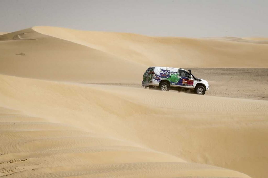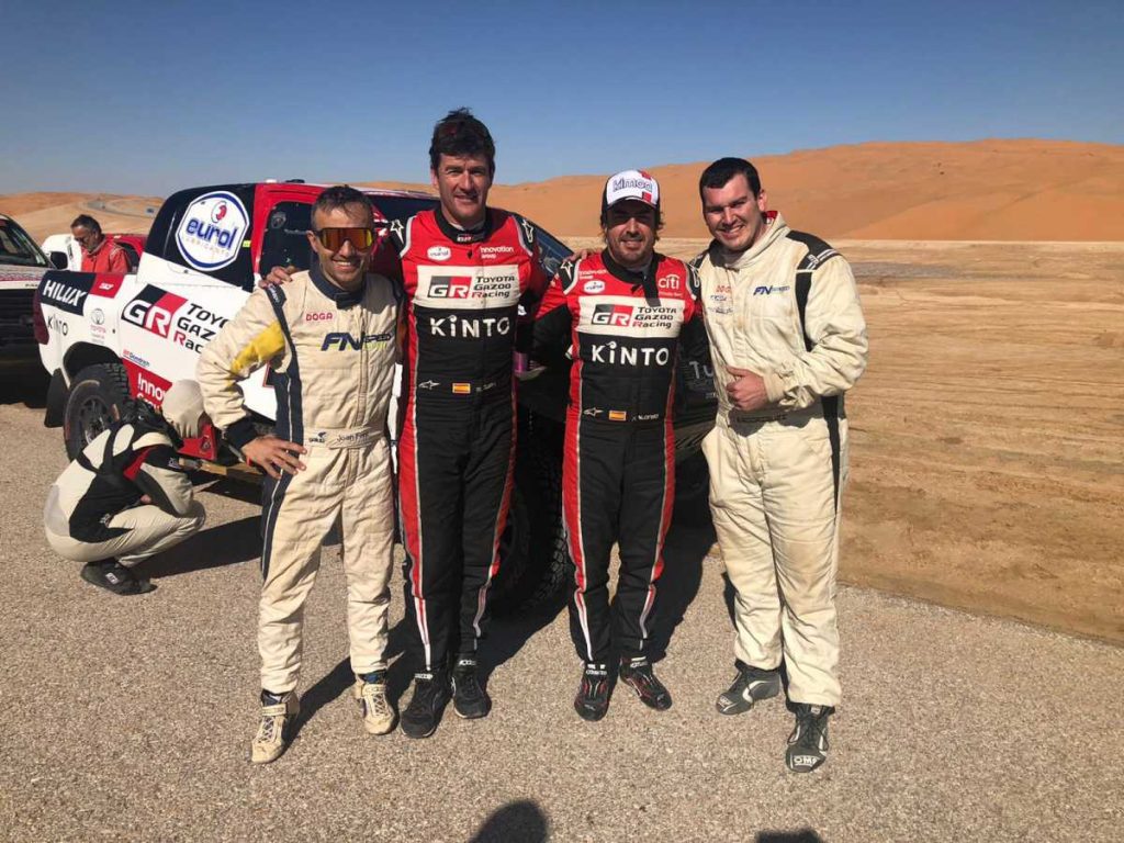 La undécima etapa del Dakar 2020 suponía la primera jornada de regreso a la capital del país, con una especial de 374 kilómetros, de los que buena parte transcurrieron por las dunas del Empty Quarter, uno de los desiertos de arena más grandes del mundo. En la salida, los dos integrantes del FN Speed Team coincidieron con Fernando Alonso y Marc Coma, quienes salían tan sólo 5 minutos por delante. “Ha sido muy bonito. Es muy gratificante compartir una carrera con dos pilotos tan admirados como ellos”, admite Joan Font.