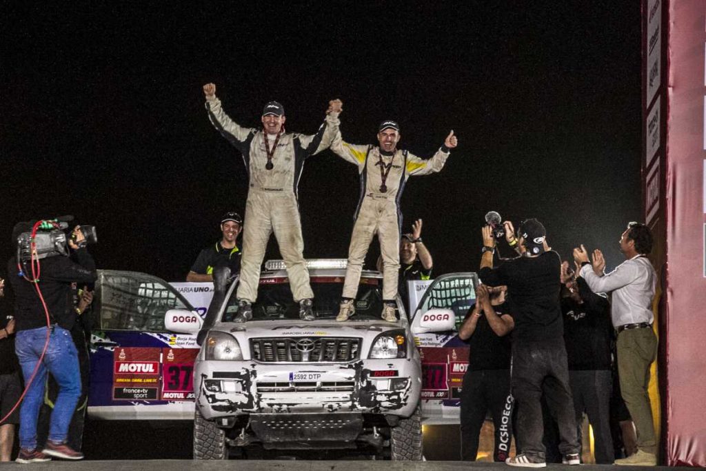 Después de 7.800 kilómetros y casi 5.000 cronometrados, el Toyota Land Cruiser del FN Speed Team ya está en la meta del Dakar. Joan Font, que en 2019 acababa por primera vez el rally con un Side-by-Side, repite en el podio de llegada, en esta ocasión con un coche de serie. Borja Rodríguez, por su parte, se ha consagrado en su primera participación y se ha revelado además como un excelente copiloto.