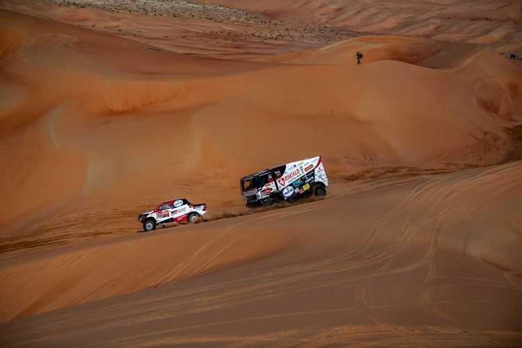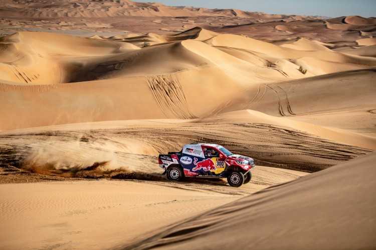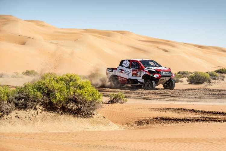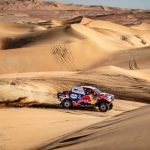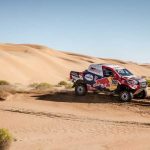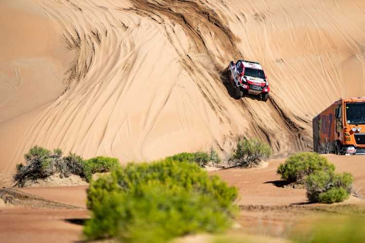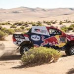 Giniel de Villiers y su copiloto, el español Alex Haro, en el tramo de regreso del maratón del Dakar, cruzaron la línea de meta a 12 minutos y 14 segundos de los vencedores, firmando otra sólida actuación. Ya son quintos de la general, a 1 hora, 6 minutos y 34 segundos. La penúltima etapa también fue destacada para Bernhard ten Brinke y Tom Colsoul, que fueron cuartos, a solo 10 minutos y 14 segundos de los ganadores. Su buena actuación les permitió quedarse a 4 minutos y 55 segundos de la sexta plaza.