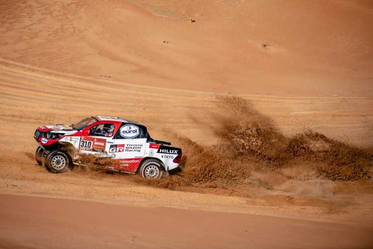 Las cuatro parejas de pilotos y copilotos de TOYOTA GAZOO Racing lograron regresar al campamento en Haradh después de la etapa 11 del Rally Dakar, la segunda parte de la etapa maratón, para que los mecánicos del equipo preparasen los Toyota Hilux de cara a la etapa final, mañana viernes. La penúltima etapa, de 744 kilómetros, incluyó una especial de 379 kilómetros, con 80 kilómetros de dunas.