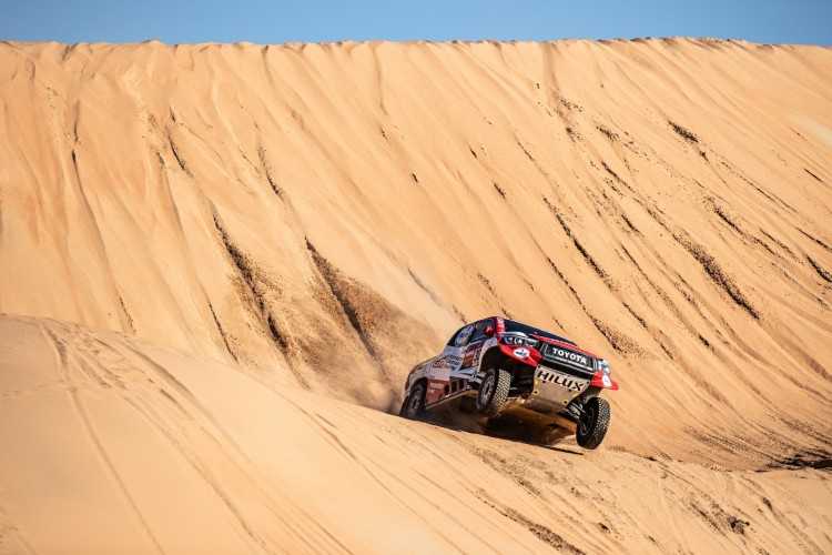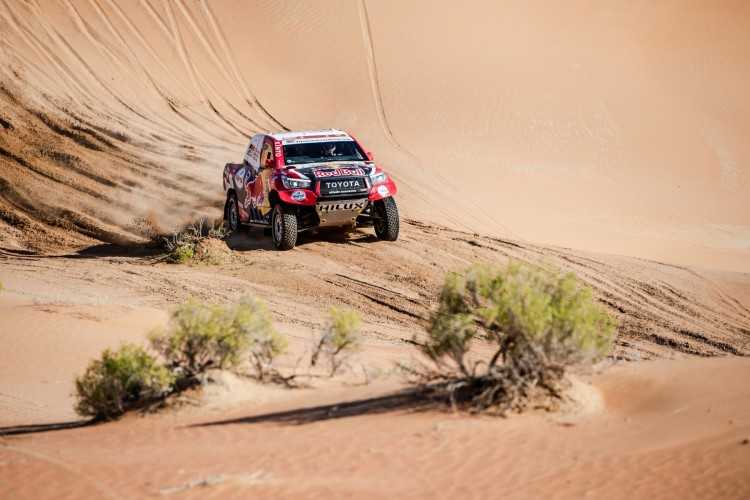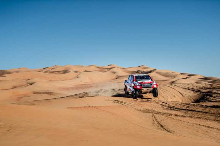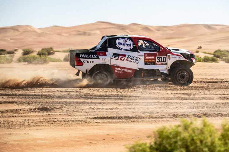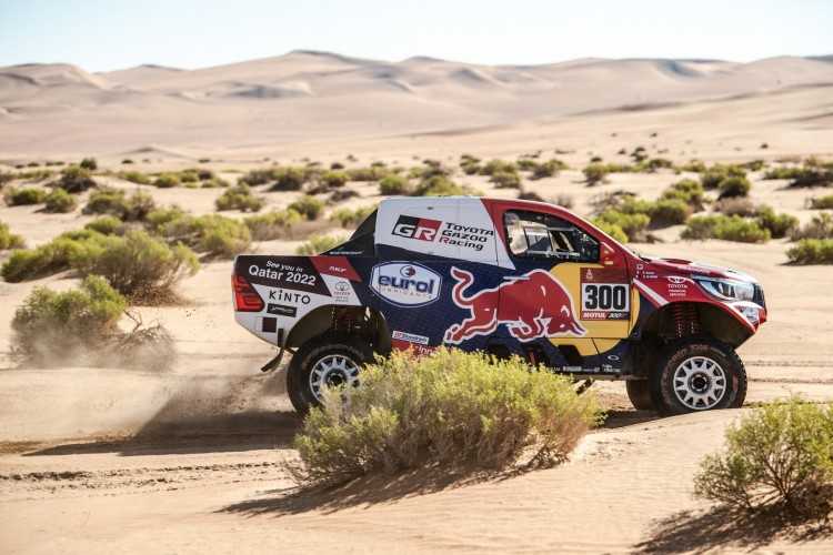 -Los cuatro pilotos de Toyota finalizan la etapa en el top 10, sin grande problemas en la segunda parte de la maratón del Dakar tras descansar en el vivac y no tener ayuda de los mecánicos la noche previa.