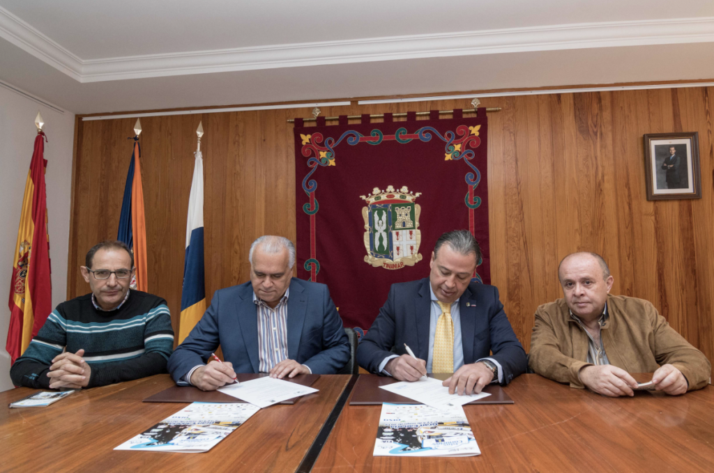 Antonio Ortega, alcalde de la Vega de San Mateo, y Germán Morales como presidente del comité organizador, mantuvieron la pasada semana una reunión en la que trataron las novedades de esta prueba del FIA ERC y firmaron el convenio de colaboración por el que, un año más, este municipio será una parte fundamental del desarrollo del Rally Islas Canarias en su edición número 44.