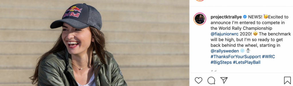 ¡NOTICIAS! 🥳 ¡Emocionada de anunciar que participaré en el Campeonato Mundial de Rallys en el @fiajuniorwrc 2020! 🤩 El punto de referencia será alto, pero estoy tan lista para volver al volante, comenzando en el @rallysweden ❄️ ⛄️ #ThanksForYourSupport #WRC #BigSteps #LetsPlayBall