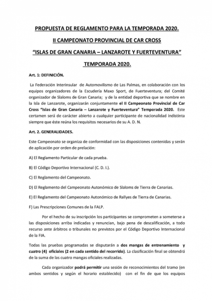 Publicamos la propuesta reglamentaria presentada para el Campeonato Provincial de Las Palmas de Car-Cross para las islas de Gran Canaria, Lanzarote y Fuerteventura de cara a la temporada 2020.