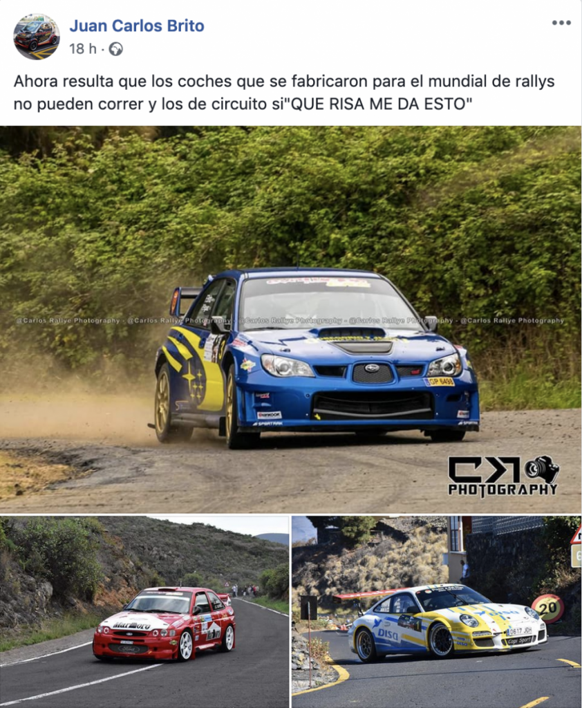 El piloto tinerfeño Juan Carlos Brito es otro de los que ha mostrado su malestar y sorpresa ante la posibilidad que la federación Canaria de Automovilismo pueda sacar adelanta la propuesta que evitaría que las monturas WRC pudiera competir en Canarias.