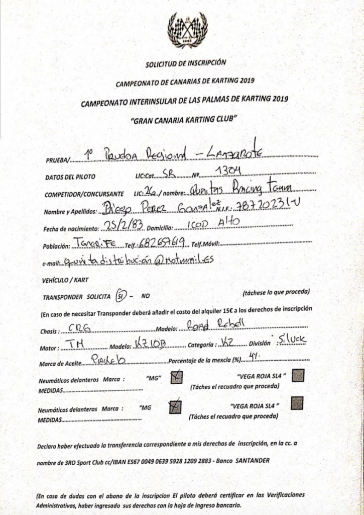 Como no escondemos nada y solemos ser trasparentes, adjuntamos pruebas y respuesta de la Federación Canaria de Automovilismo (FCA), ante tan grave error de no puntuar una prueba en la que adjuntamos una de las 8 inscripciones que tenemos, donde dice claramente CAMPEONATO DE CANARIAS 2019, ¡si señores, así mismo!