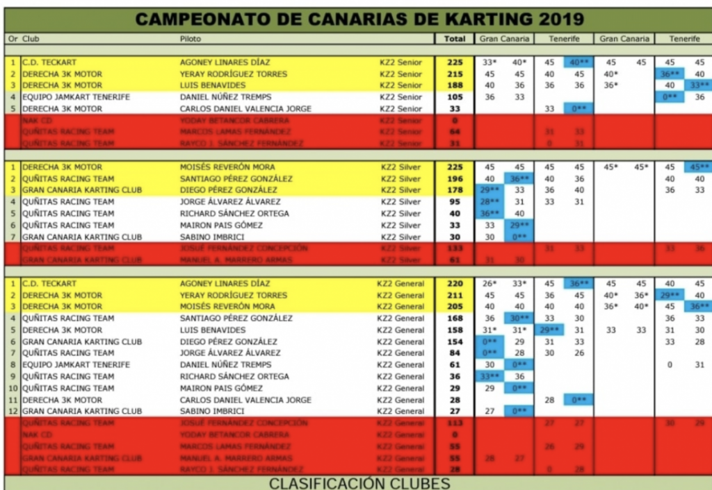 Pero bueno, en fin, así está la FCA con el karting. Buen arranque de la nueva legislatura: tres carreras organizadas por esta gente que fueron una auténtica chapuza y, además de eso, por la cara nos quitan una prueba disputada y además cambian los clubs a los pilotos. Fijarse la planilla de este piloto inscrito con nuestro club y no sabemos por qué ahora está con el club del organizador de las pruebas… Se reclamó, pero así se quedó y puntos para ellos y los motivos sólo ellos los sabrán. ¿Quién va a correr un campeonato en 2020 a sabiendas de que te pueden alterar a su gusto al final de año la clasificación y tirar por la borda todo el trabajo de un año? Haremos todo lo posible para impugnar este Campeonato ilegal y agotaremos todas las vías disponibles. Esperamos que las páginas digitales y prensa sean valientes hagan público tan grave arbitrariedad de la FCA.