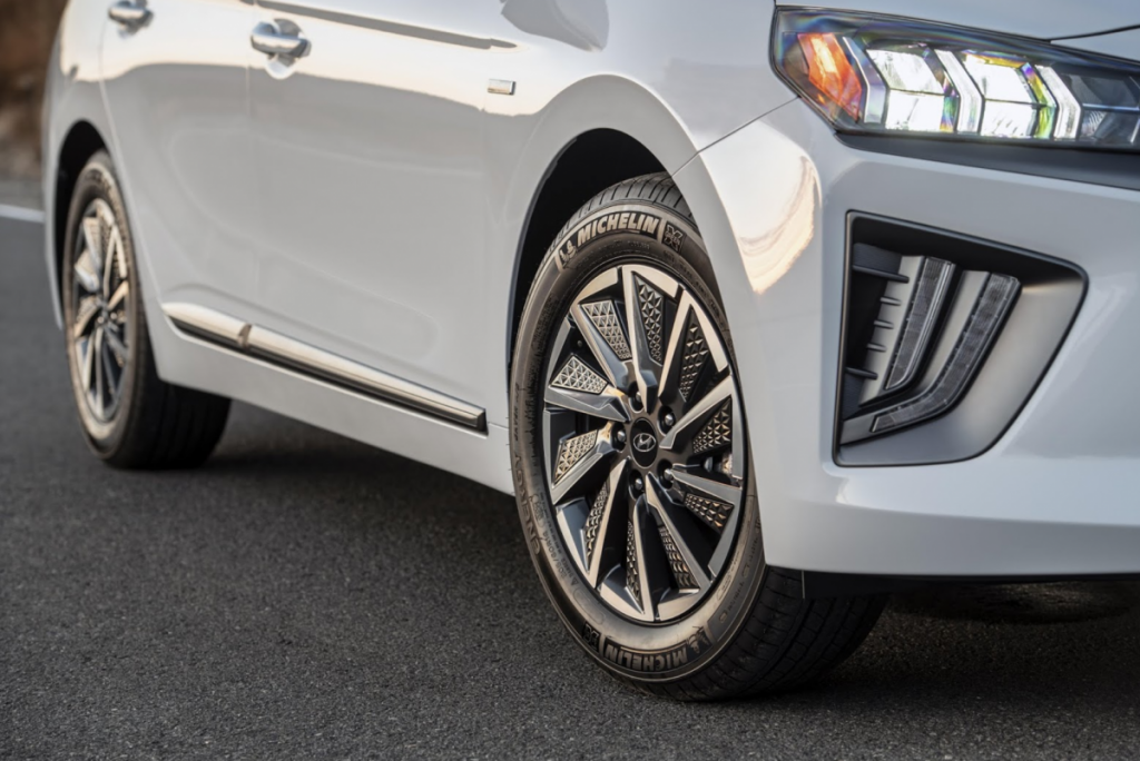 El frontal del nuevo IONIQ Eléctrico se ha actualizado con una parrilla cerrada que ahora presenta un nuevo patrón distintivo. También incorpora un paragolpes delantero rediseñado con una moldura de color plateado en la parte inferior y biseles en las luces diurnas, creando un aspecto más refinado y dinámico. El paragolpes trasero también añade molduras en color antracita. Las luces diurnas de led, así como los nuevos faros delanteros y traseros de led, se han rediseñado por completo para que el IONIQ destaque por la noche, ofreciendo no solo mejoras estéticas, sino también seguridad adicional. El IONIQ Eléctrico está disponibles con llantas de aleación de 16 pulgadas rediseñadas.