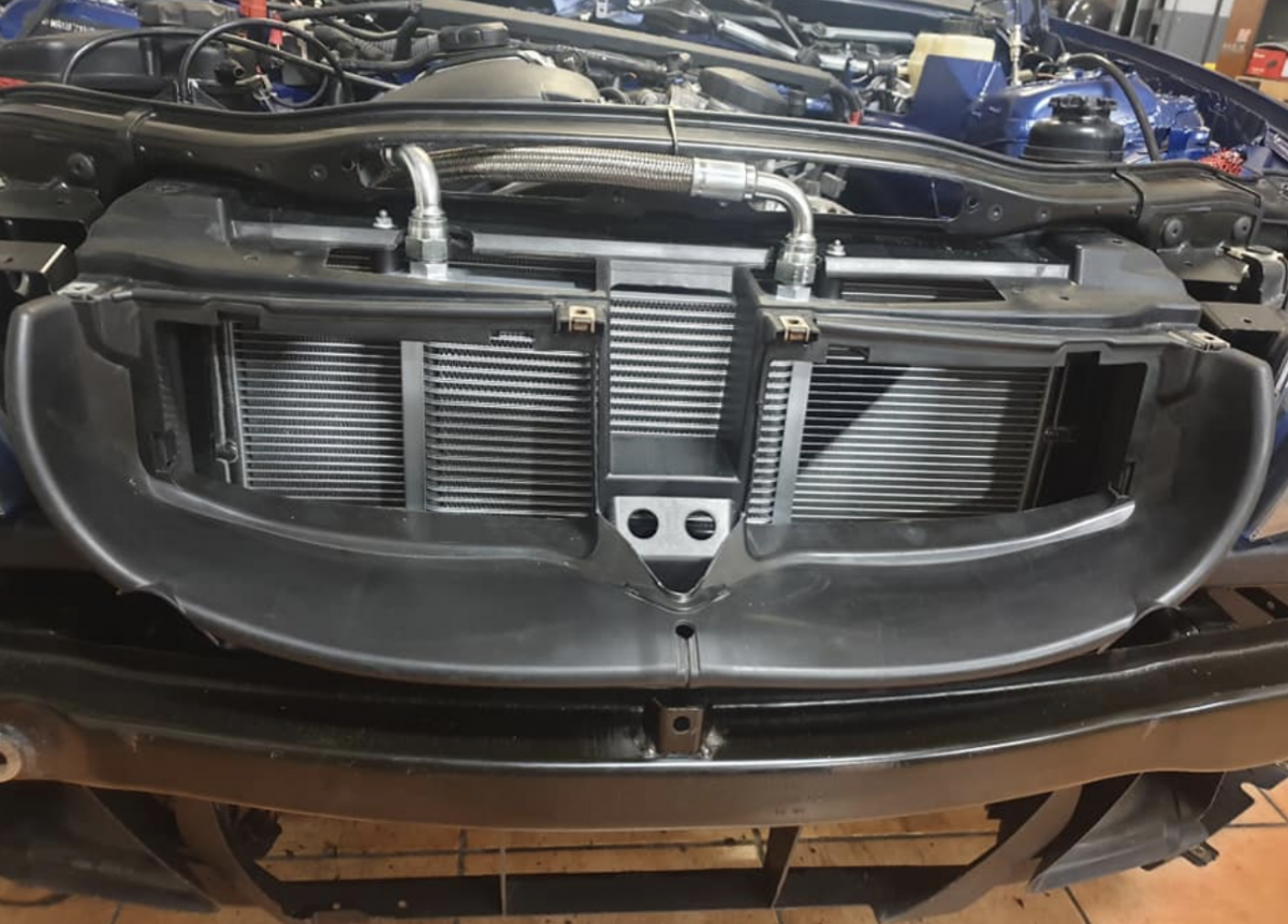 Tocó adaptar un nuevo radiador de aceite mejor situado y de mayor volumen, terminar el parachoques, dándole un toque más deportivo con unos spliters, y adaptando el enganche (tomahawk) necesario, según normativa así, como las tomas de aire para refrigerar la frenada.