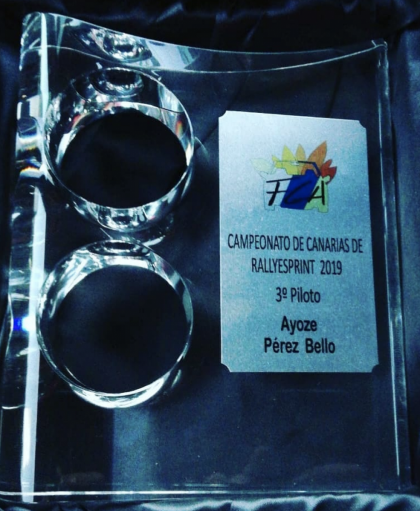 El siempre rápido piloto palmero Ayoze Pérez recogió el premio a su tercer puesto en el Campeonato de Canarias de Rallysprint de la temporada 2019 logrado a los mandos de su Peugeot 106 S16.