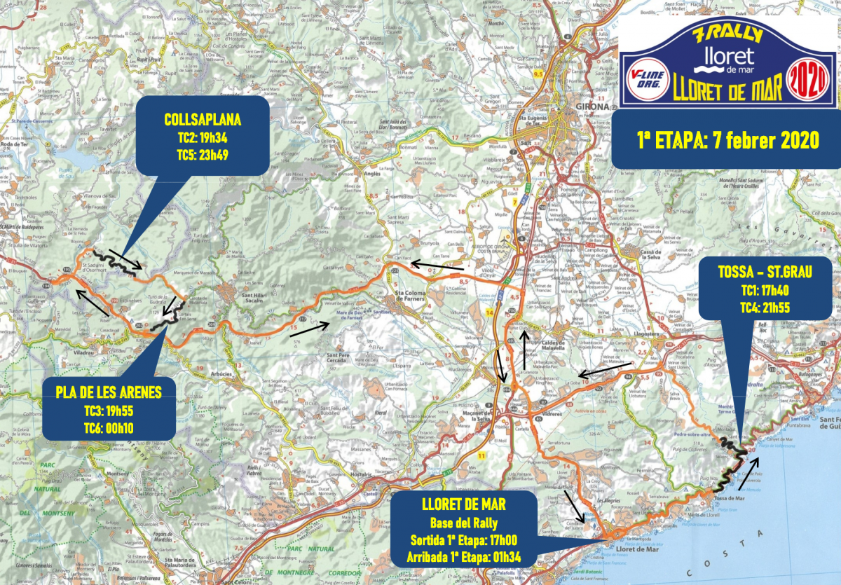 Los horarios quedan levemente modificados a raíz de este cambio de recorrido y el resto del rally sigue invariable. El itinerario de la primera etapa se indica esquematizado al pie de este texto y el documento completo del itinerario-horario y planos puede obtenerse en https://www.vlineorg.com/es/rally-lloret-de-mar/