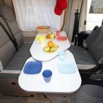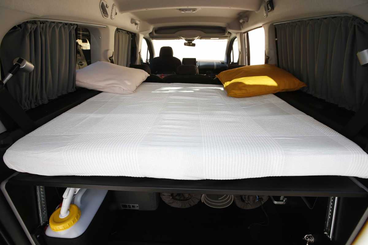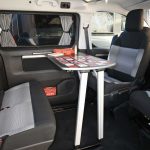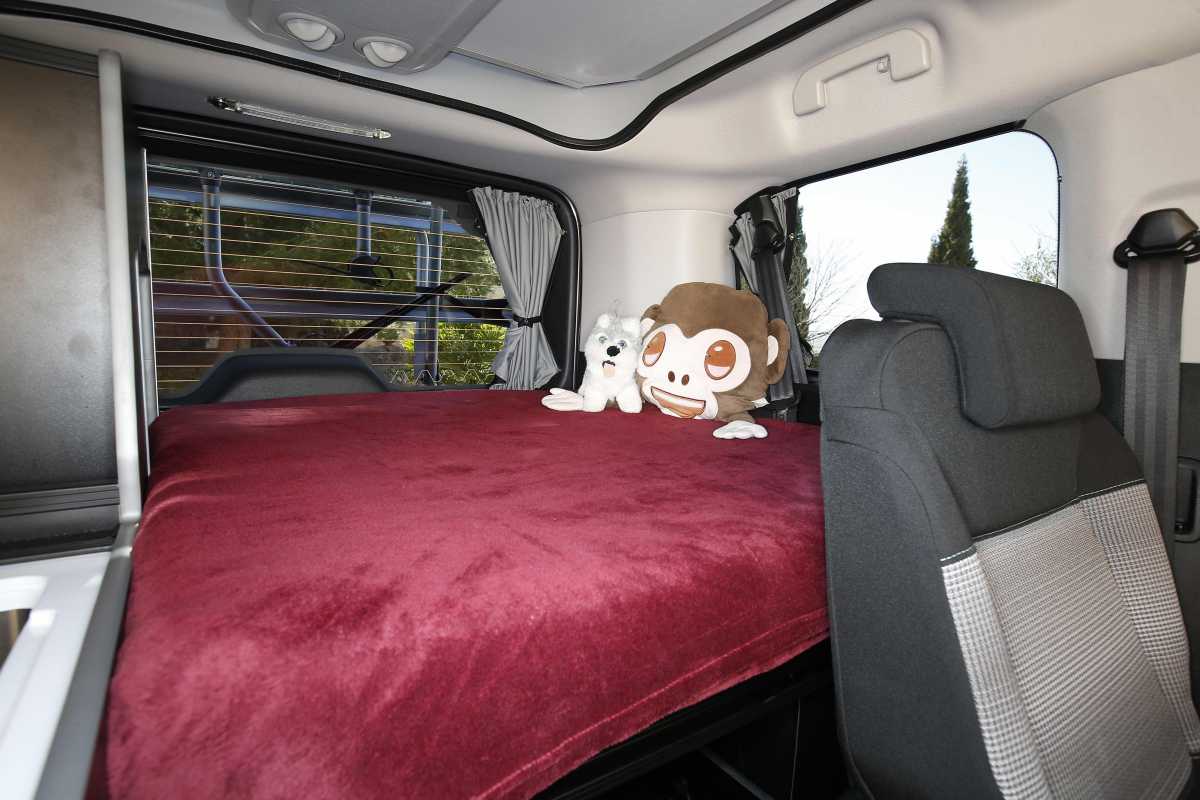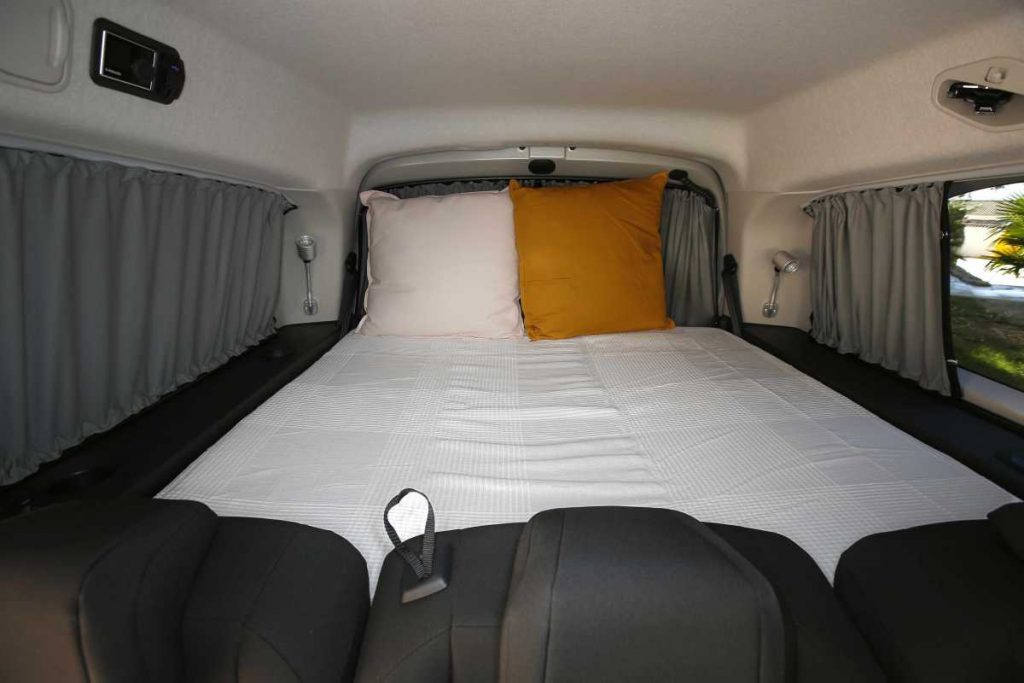 Ya la versión Sweet, que se comercializa en las tallas M y XL, permite descansar de un modo confortable al poder ofrecer dos camas, una para niñxs de 1,40 m x 1,15 m y otra para adultxs, de 1,40 m x 2,00 m. Se sitúan sobre el maletero y los asientos de la tercera y la segunda fila. Gracias a su modularidad, se pueden montar o desmontar en menos de 5 minutos. El confort y la seguridad están asegurados gracias a los colchones de espuma viscolástica de alta densidad y a los muebles laterales ignífugos, que aprovechan los puntos de anclaje del vehículo para una sujeción total. Para poder comer o disfrutar de un juego de mesa o de una buena conversación, cuenta con una mesa plegable, para su uso en el interior o el exterior, y de asientos delanteros giratorios. Además, puede incorporar una ducha eléctrica de 12v con 12 litros de capacidad.