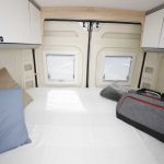 Por su parte, el Citroën Jumper Celebration 600, desarrollado en colaboración con Clever Vans, también con las prestaciones del BlueHDi 140 y la fiabilidad reconocida del Jumper, destaca por su cama doble trasera de 193×140 cm y su completo mobiliario en color roble. Dispone de un baño revestido en CPL con ducha, lavabo y WC y de cocina Dometic con dos fogones y fregadero y calefacción y agua caliente.