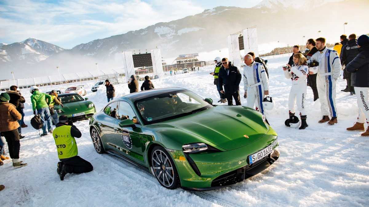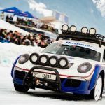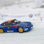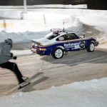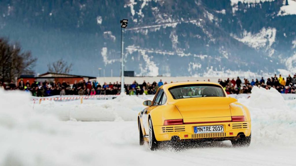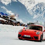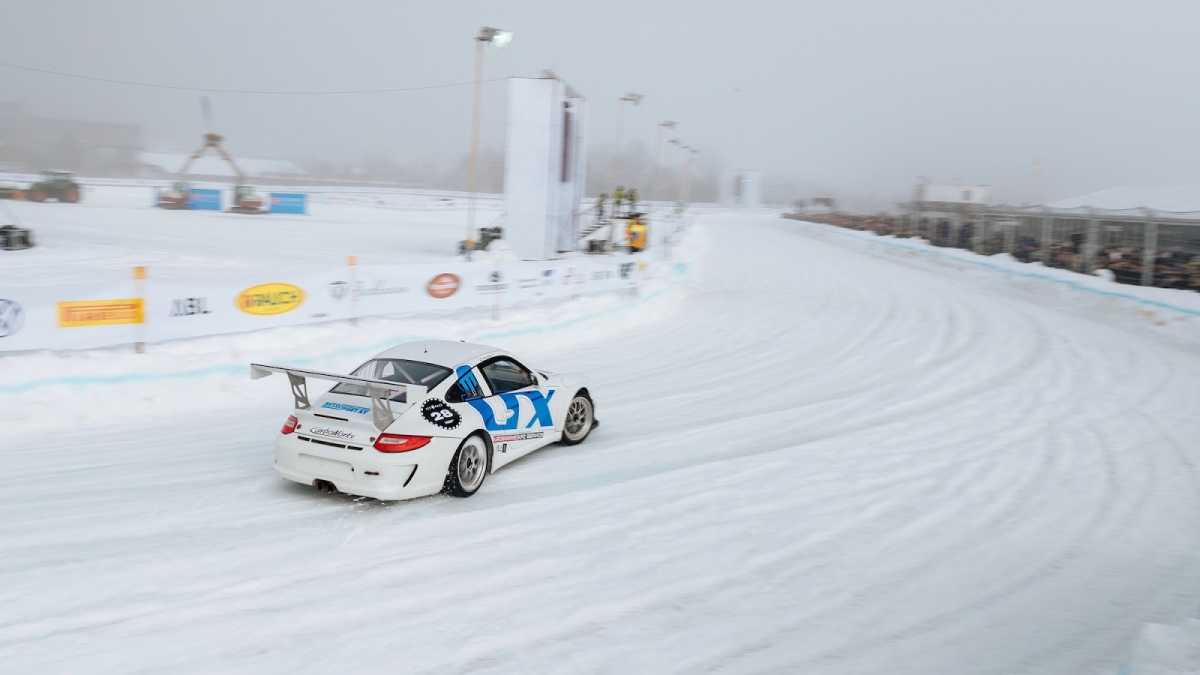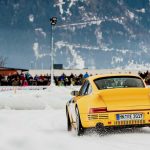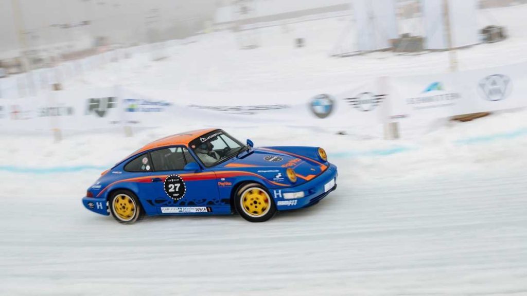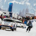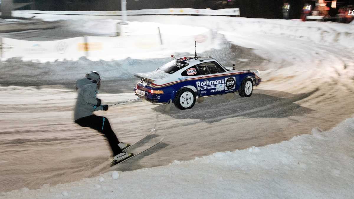 En un circuito de 600 metros de longitud construido sobre una capa de hielo de 40 centímetros de espesor, se deslizaron entre curvas varios modelos Porsche muy interesantes e históricamente significativos que, tras la carrera, entraron directamente en los libros de historia. Muchos de ellos, dentro de un entorno controlado, remolcaron a los esquiadores haciendo resurgir el arte perdido del skijöring, incluido el piloto de Le Mans Jörg Bergmeister, quien iba al volante mientras el medallista de oro olímpico de esquí Aksel Lund Svindal recorría la pista sobre sus tablas (pruebas realizadas por un piloto y un esquiador profesionales en circuito cerrado).