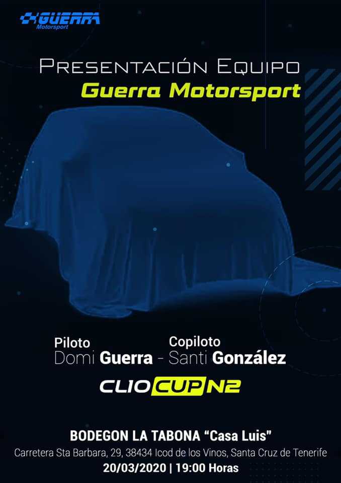 El equipo Guerra Motorsport presentará su nuevo Renault Clio Cup N2 que Domi Guerra y Santi González pilotarán esta temporada 2020.
