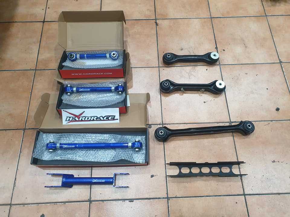 Nuestro E90 ya está más cerca de la meta. Semana de trabajo sobre el puente trasero que, aunque estaba montado en Powerflex black, lo cambiamos por tirantes Hardrace con uniball suministrados por Andrés Miranda Medina de Piquillo Motor.