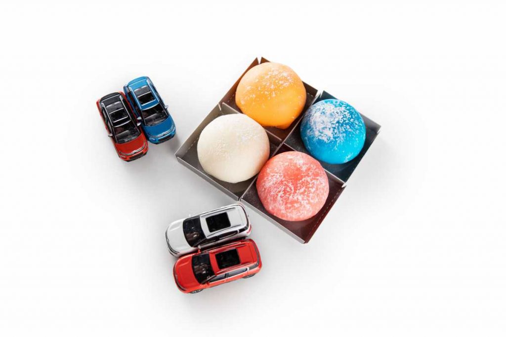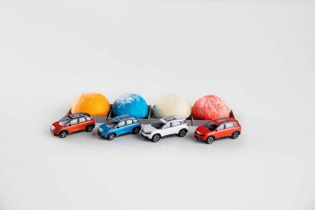 El Naranja Spicy del SUV Citroën C3 Aircross ha sido la inspiración directa del Mochi de Yuzu, basado en un cítrico muy popular en Asia Oriental, mientras que el Breathing Blue ha sido la musa del Mochi de Cheesecake, que recoge la mejor tradición americana con una mousse de queso y relleno de mermelada de arándanos.