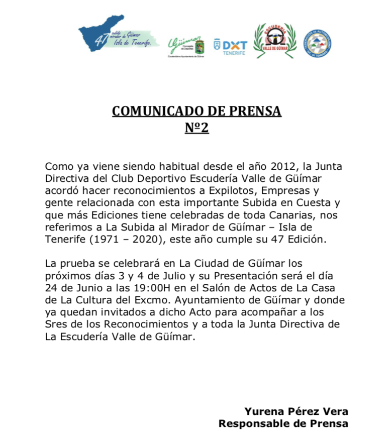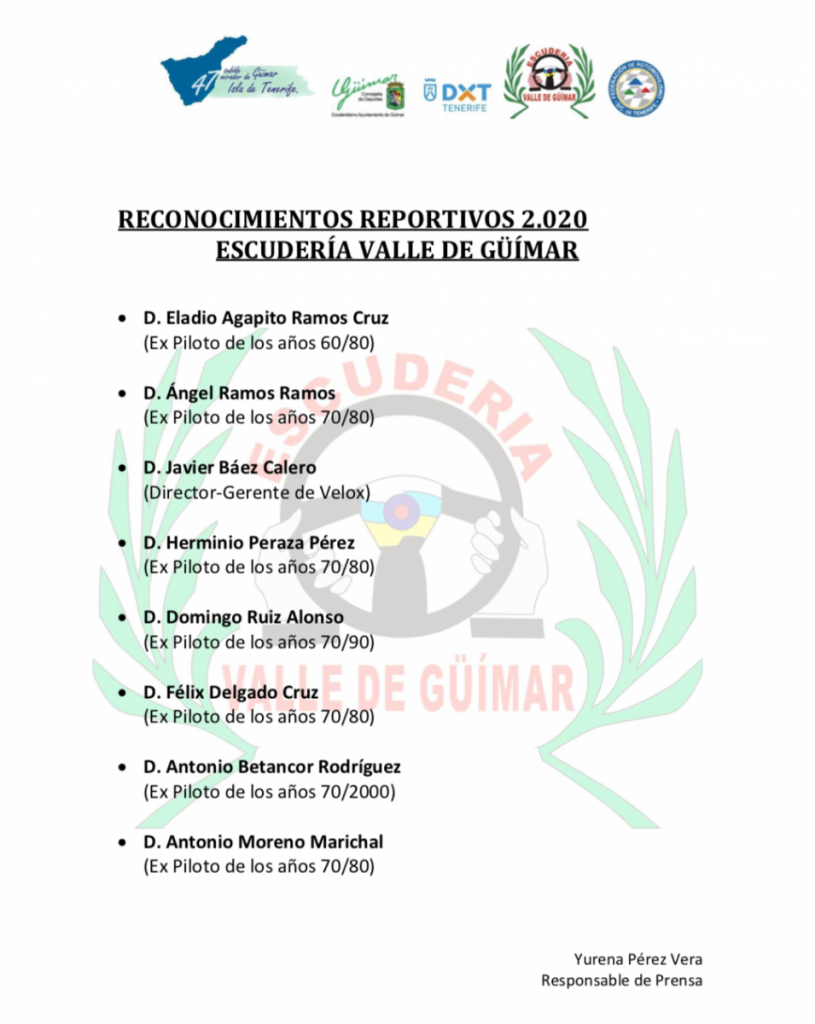 El Club Deportivo Escudería Valle de Güímar, un año más, continuará con sus reconocimientos a ex pilotos, empresas y gente relacionada con la cita tinerfeña.