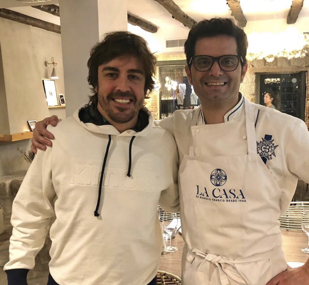 De todos era conocida su buena vibración con Antonio Lobato, que estuvo muy cerca del piloto asturiano en la televisión en sus títulos. Menos conocida es la que ha mantenido con el que fuera periodista del diario AS Manu Franco que, a pesar de dejar la profesión periodística para enfocar su vida profesional en los fogones, siguen manteniendo una muy buena relación.