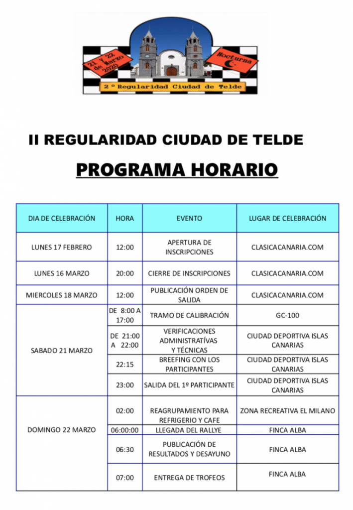 La Escudería Cludemoteld, en colaboración con la Escudería Faroga, organizan para los próximos 21 y 22 de Marzo, en la isla de Gran Canaria, la II Regularidad Ciudad de Telde, evento de regularidad para vehículos históricos con más de 25 años, a la fecha de la celebración.