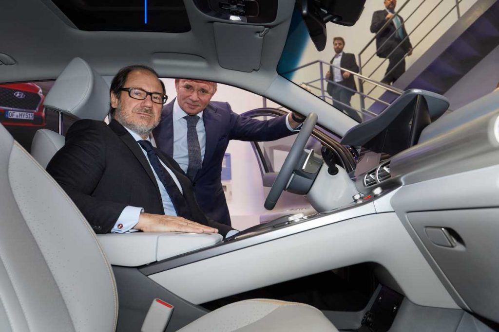 Mariano González Sáez y Leopoldo Satrústegui en el Hyundai NEXO, primer coche propulsado por pila de combustible de hidrógeno matriculado en España