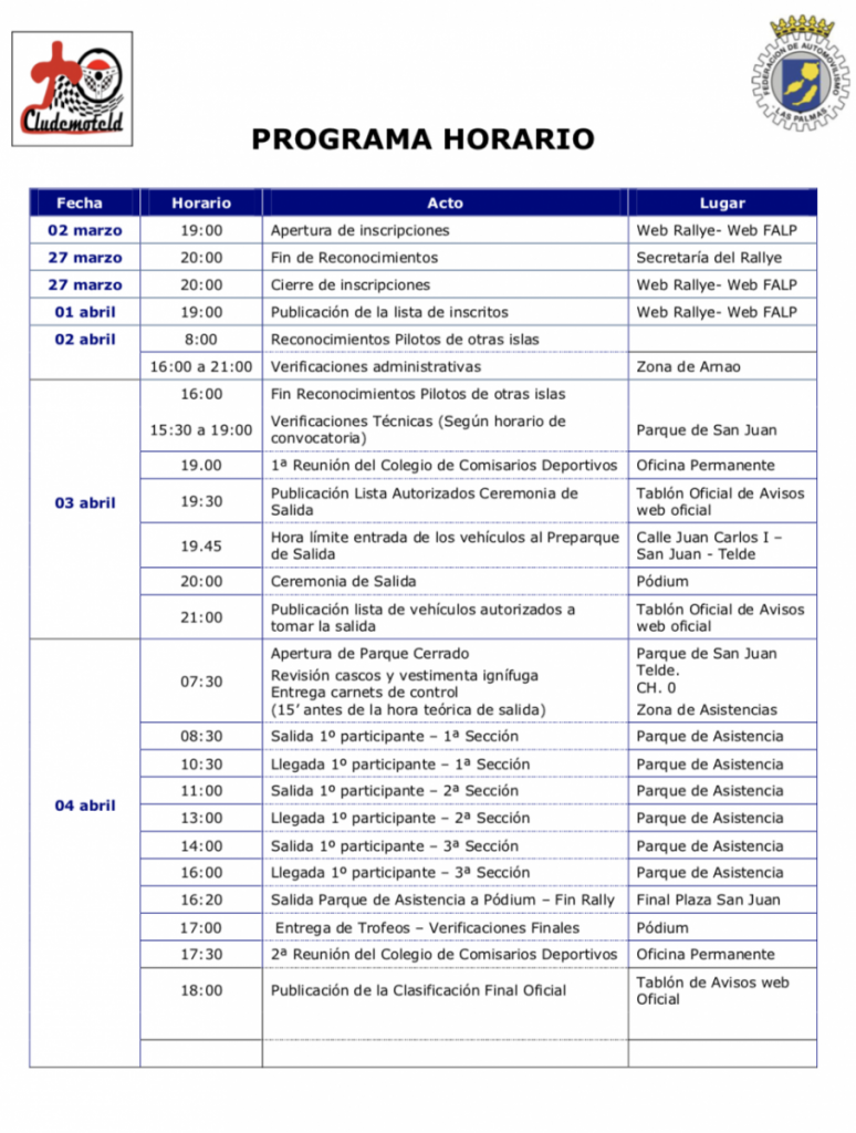– Tras atender las peticiones de los equipos participantes, se han ampliado los horarios del Rally Ciudad de Telde, para hacerlo más holgado.