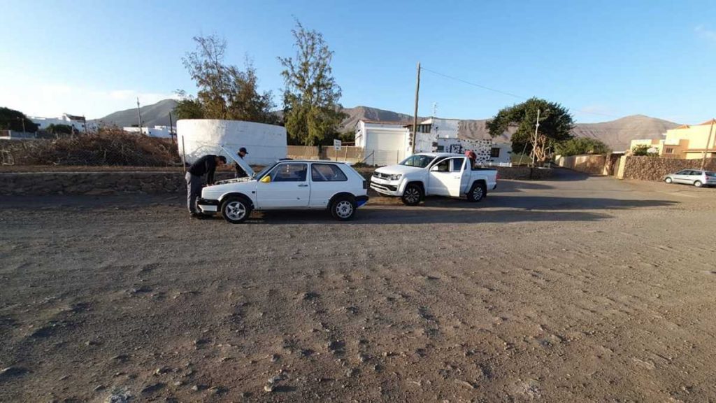 El grancanario Cristian Calderín y el tinerfeño Gustavo Fumero realizaron una jornada de test con el nuevo Golf MKII del equipo deportivo GF Competition con el que Jéssica Casanova y Vero García competirán el domingo 15 de marzo en el Slalom de Arico.