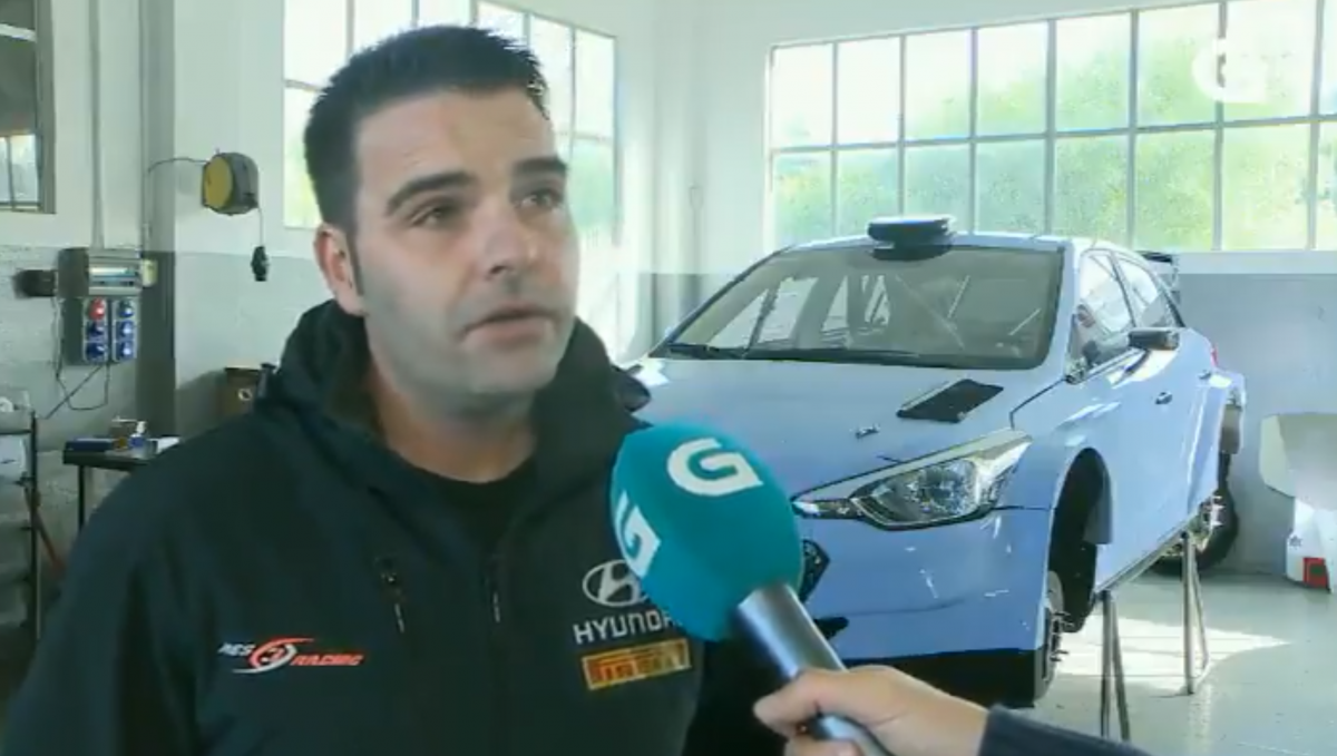 El piloto gallego Iván Ares, que fue entrevistado por la tele gallega, está preparando su nuevo Hyundai i20 R5.
