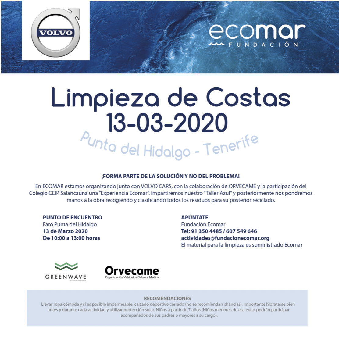 El próximo viernes 13 de marzo puedes unirte a los voluntarios de la Fundación Ecomar y Volvo Orvecame para la limpieza de playa en el Faro de Punto Hidalgo en la isla de Tenerife.