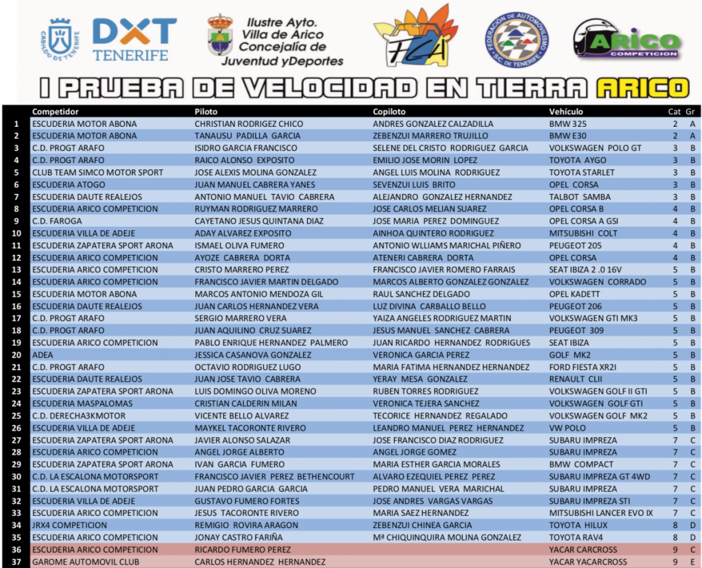 La lista de incritos de I Prueba Velocidad en Tierra Arico Por Rafa León Última actualización: 11/03/2020 19:34 Compartir FacebookTwitterWhatsAppEmailTelegramLinkedin Publicamos la lista de incritos de I Prueba Velocidad en Tierra Arico (Tenerife). AricoCampeonato de TenerifeCanariasProvincial de Santa Cruz de TenerifePrueba de Velocidad en Tierra AricoSanta Cruz de TenerifeTenerife Compartir