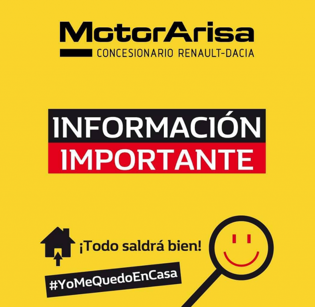 Desde Motor Arisa queremos comunicar a todos nuestros clientes que hemos decidido cerrar nuestras exposiciones de ventas debido a la alerta sanitaria por coronavirus (Covid-19), ya que creemos que también es nuestra responsabilidad velar por la salud y seguridad de todos.