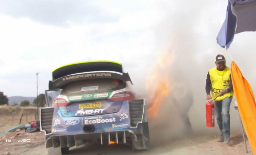 Se incendia el Ford Fiesta WRC de Esapekka Lappi en el Rally de Mexico 2020