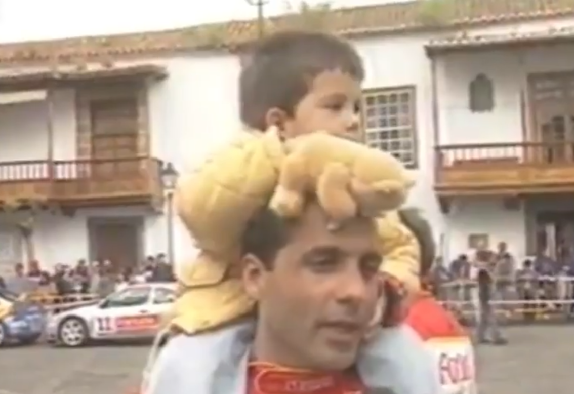 Graciso vídeo el que ha subido a la redes sociales Luis Felipe Monzón, hijo del dos veces campeón de España de Rallys de Asfalto, Luis Monzón, que era entrevistado tras un Rally Villa de Teror con su hijo en sus hombros.