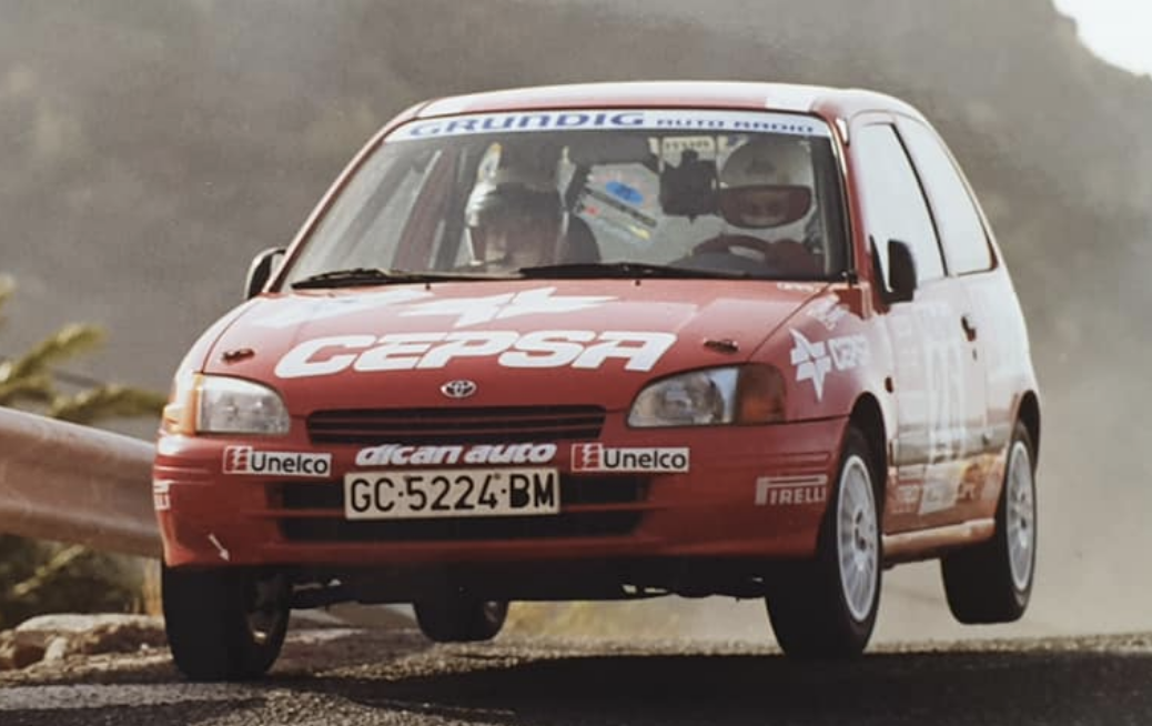 Gracias a Tino Pérez podemos recordar, mediante un vídeos de cámara interior, al siempre rápido José Pérez, al que vemos cons u Toyota Starlet y Honda Civic copilotado por Miguel Cruz y Manuel Blanco.
