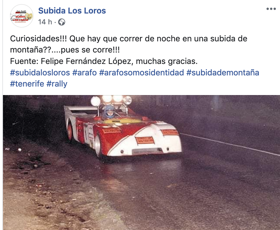 Al piloto tinerfeño Jonathan García Palenzuela le atrae la idea de hacer la Subida a Los Loros de manera nocturna, la cuál ha sido sugerida por la misma organización por las redes al recordar una cita anterior.