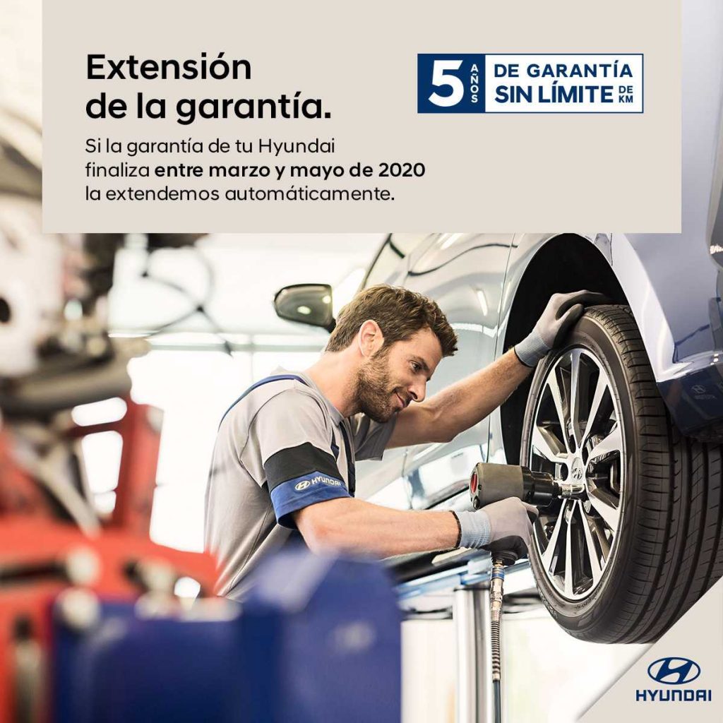 Hyundai Canarias amplía la garantía de todos los vehículos Hyundai con garantias originales que expiran entre el marzo y mayo de este año hasta finales de mayo de 2020. En caso de que el estado de alarma se amplíe Hyundai informará a los clientes de los cambios que puedan afectar a la garantía. La marca en Canarias traslada su apoyo a los clientes canarios que confían en Hyundai y por eso, en los momentos más duros, busca alternativas para transmitir tranquilidad a todos esos propietarios de un Hyundai que han tenido que dejar aparcado su vehículo en casa.