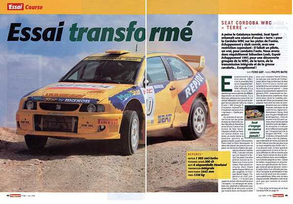 Días después de la disputa del Rallye Cataluña de 1999 en el que Philippe Bugalski conseguía la primera victoria de un Kit Car frente a los WRC, la revista francesa Echappment tenía previsto realizar un reportaje sobre el coche de la marca española. Una de las condiciones que impuso Seat Sport para el reportaje era que no podría subirse al coche un periodista, por lo que tenían que buscar un piloto.