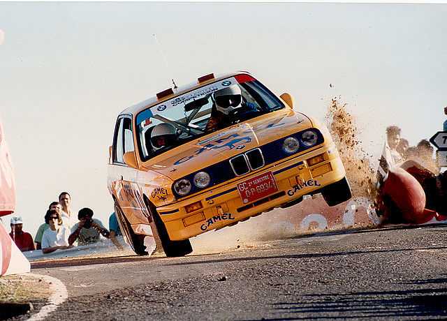 La foto protagonista pertenece al piloto grancanario José María Ponce, que lo acompañaba por aquel entonces Gaspar León, tripulantes del BMW M3 de grupo A. Acometían el Cruce los Cuchillos, tramo encuadrado dentro del XIII Rally El Corte Inglés de 1989, y era aquí donde llegaba el instante del asunto, Ponce se ciñe más de la cuenta en una chicane, catapultado el coche del lado del piloto, con la consecuencia que se pone en dos ruedas. Circunstancia que salvó exitosamente el piloto, y produciendo una destronadora ovación de los cientos de aficionados presentes.