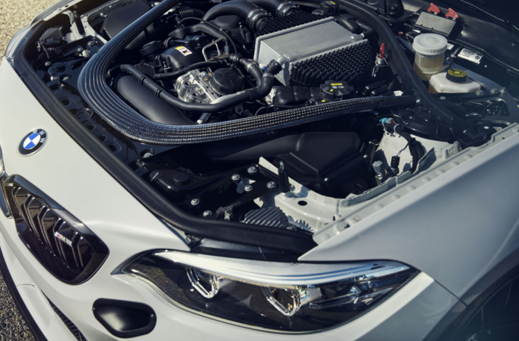 El nuevo BMW M2 CS Racing está impulsado por un motor de seis cilindros S55 con tecnología BMW M TwinPower Turbo, que con una cilindrada de 2,979 cc que en la versión de competiciçon alcanza entre 280 CV (205 kW) y 365 CV (268 kW), dependiendo en la clasificación Balance of Performance o Permit B. El par máximo de 550 Nm se transmite mediante una caja de cambios de doble embrague de 7 velocidades, que se ha aplicado utilizando un software especializado para competición.