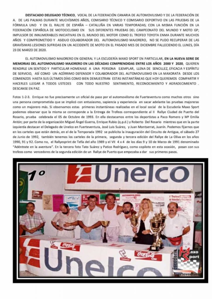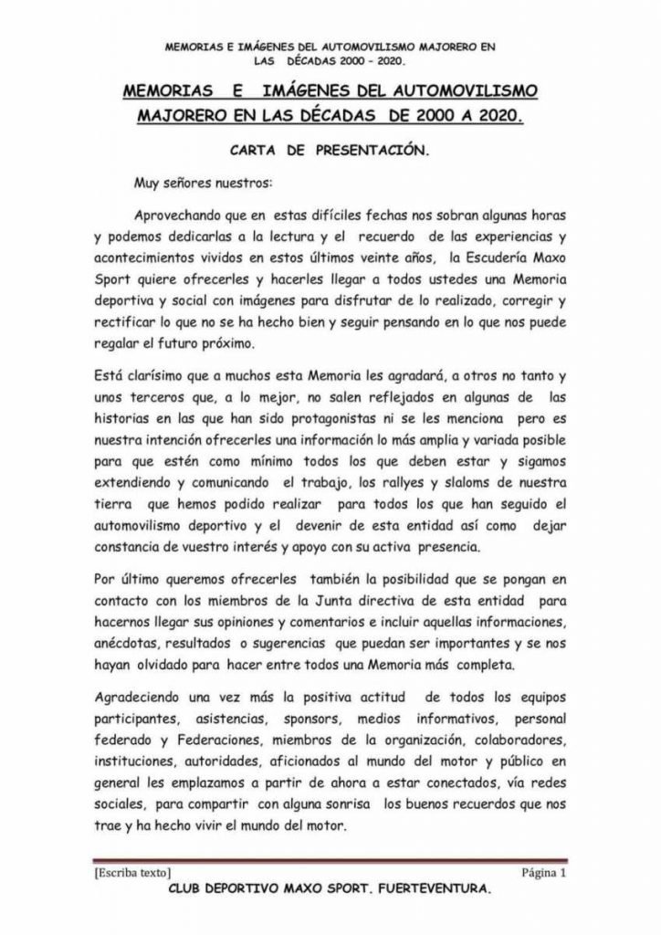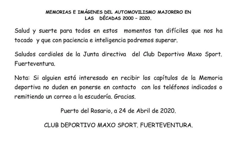 Publicamos el comunicado de prensa de la Escudería Maxo Sport ha remitido sobre las memorias del automovilismo majorero en las décadas de 2000 a 2020.