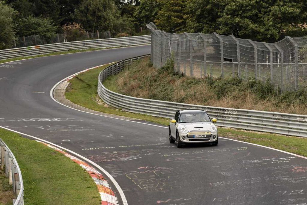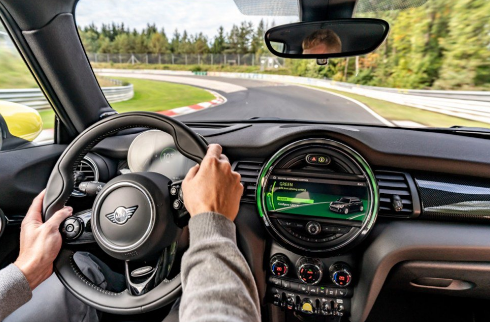 El circuito pone a prueba las excepcionales cualidades del coche, exigiéndole que domine retos completamente nuevos. No obstante, lo que persigue el primer vehículo totalmente eléctrico del fabricante británico de automóviles de gama alta no es batir récords de velocidad en el circuito, sino de otro tipo muy diferente. Si se quiere recorrer el “Infierno Verde” en modo “Green” sin pisar el pedal del freno, es necesario que el nuevo MINI Cooper SE ofrezca la máxima eficiencia y un alto grado de sensibilidad en el pie derecho.