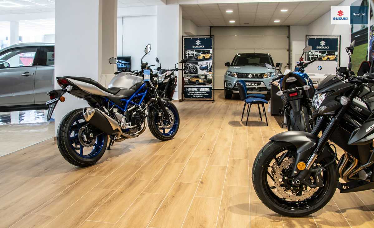 Diego Hernández, gerente de Suzuki Femotor Tenerife, nos presentó las renovadas instalaciones y la puesta en venta de la gama completa de motocicletas Suzuki: “Hemos ampliado en más de 120 m2 para incorporar las motocicletas y aprovechado a hacer una actualización general. Nuevo mobiliario, iluminaria y más espacio entre cada unidad, lo que no sólo mejora la experiencia del cliente sino que también garantiza la seguridad sanitaria. En cada punto de acceso están visibles las notificaciones del protocolo y tenemos el material sanitario adquirido a empresas fiables. Un detalle importante es que tendremos máquina de ozono para desinfectar por completo cada coche que llega, tanto en la recogida como en la entrega.”