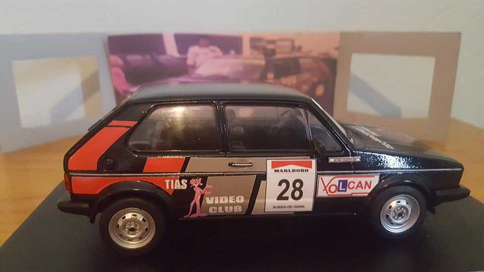 Muy sorprendido se ha quedado el ex piloto lanzaroteño Antimo Valiente al ver el detalle que han tenido sus hijos al regalarle una maqueta del VW Golf GTI con el que compitió en el pasado.