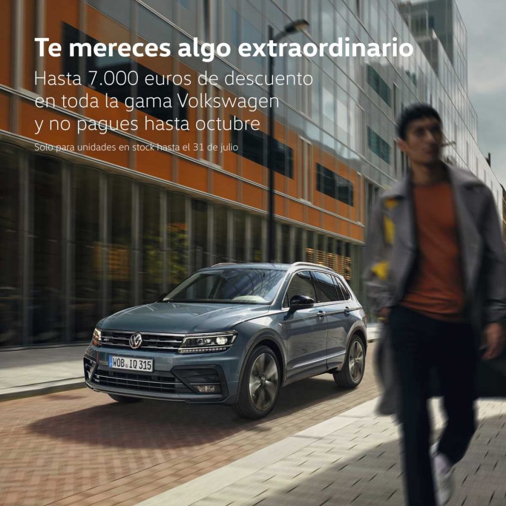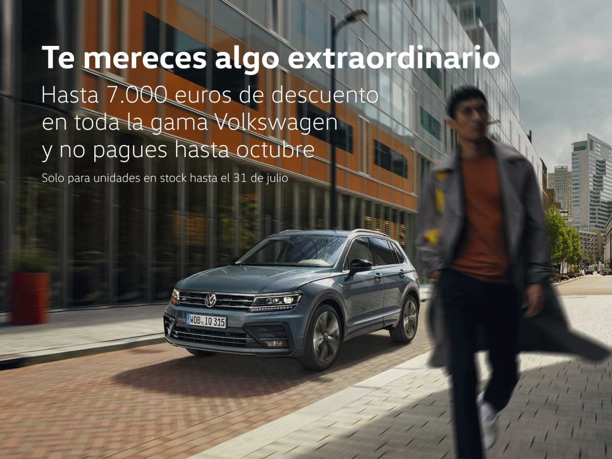 Un día extraordinario es poder comprar el Volkswagen de tus sueños, ahorrarte hasta 7.000€ y tener la tranquilidad de no tener que empezar a pagar hasta octubre. Y es que en momentos extraordinarios como los que nos ha tocado vivir hay que buscar soluciones a la altura. Volkswagen Canarias lo tiene claro y tras volver a abrir las puertas de sus exposiciones en las islas, les da la bienvenida a los clientes con sus descuentos extraordinarios.